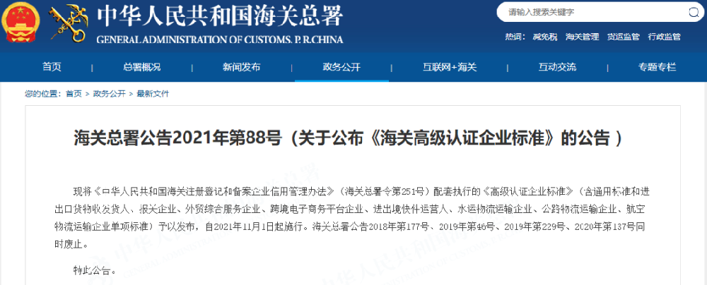 AEO认证:新版《海关高级认证企业标准》